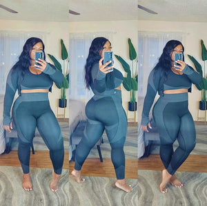 Grey 3 Piece Pants Set #Sportswear #FitnessWear #WorkoutWear #YogaWear #ThickFit Plus Size Curvy Outfit Tryon