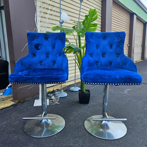 Velvet Blue Bar Stool or Table Chair or Desk Chair Adjustable Seat