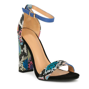 Snake Print Multi Color Ankle Strap High Heel Block Chunky Sandals